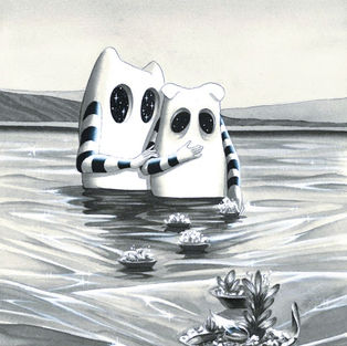 " Une petite bestiole, créée pour l'occasion du challenge Inktober, me chuchote régulièrement des choses à l'oreille...,